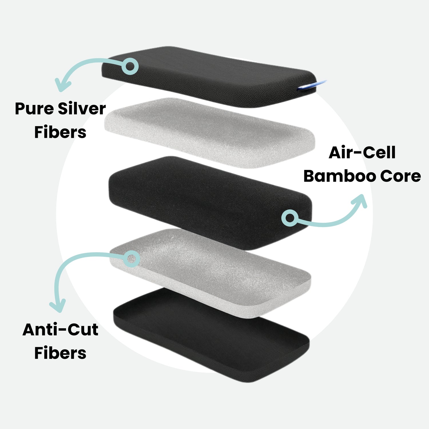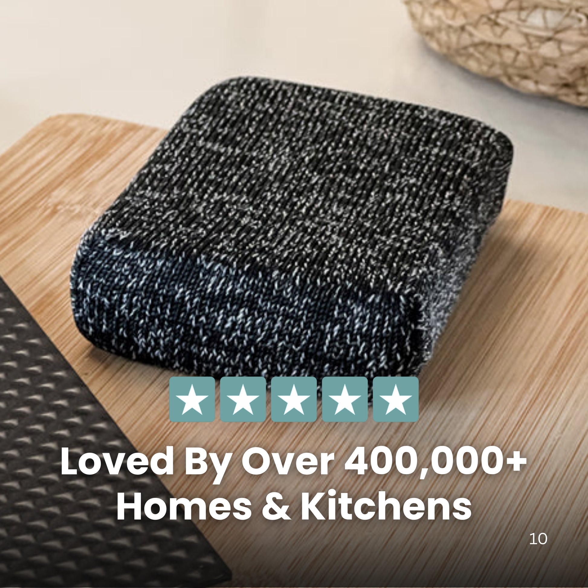 Every layer of the SilverSud™ Sponge is engineered for performance — silver fibers fight bacteria, protective fibers prevent wear, and the bamboo core adds strength while keeping its form and spring. Built to stay fresh, tough, and effective for years.